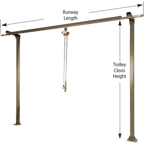 500 lb. Capacity, Spanco, Monorail System, 12' Runway Length, 12' Trolley Clevis Height, 2 Columns
