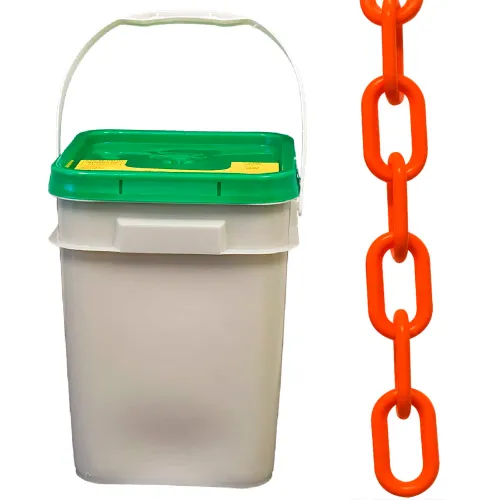 Mr. Chain Plastic Chain Barrier In A Pail, 2"x160'L, Traffic Orange