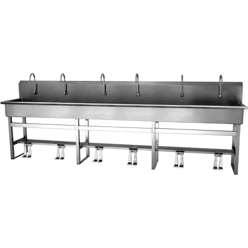 Sani-Lav® 512FSL 6-Person Floor Mount Wash-Station With Double Foot Pedal Valves