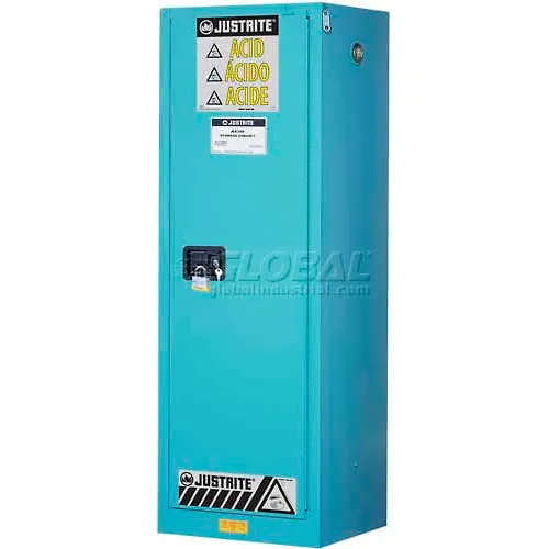 Justrite 54 Gal. Acid Cabinet, Manual Close, 1 Door, 23-1/4"W x 34"D x 65"H, Blue