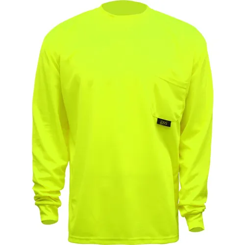 GSS Safety 5503 Moisture Wicking Long Sleeve Safety T-Shirt with Chest Pocket, Lime, XL