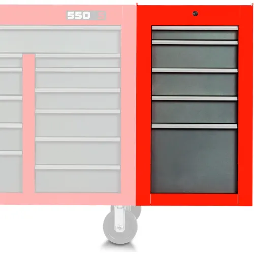 Proto® 550S Side Cabinet W/ 5 Drawers, 25-1/4"D x 34"H, Red