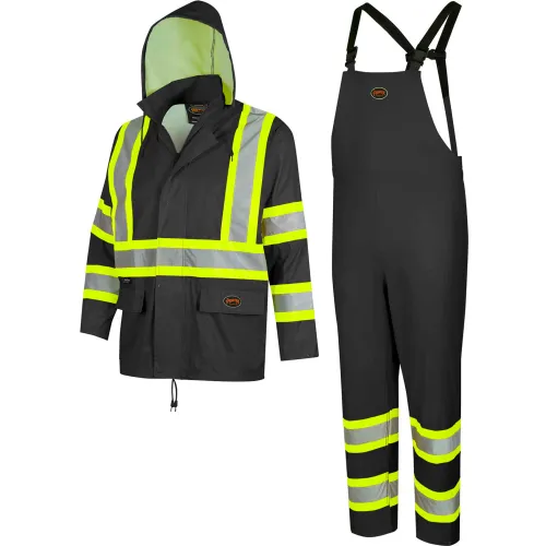Pioneer® 5599BKU Waterproof Lightweight Safety Rain Suit, L, Black
