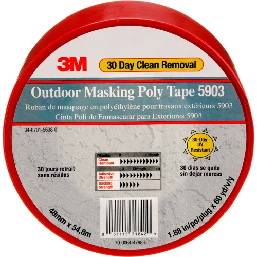3M 5903 Outdoor Masking Poly Tape, 1-7/8"W x 50-1/8 Yds., Red - Pkg Qty 24