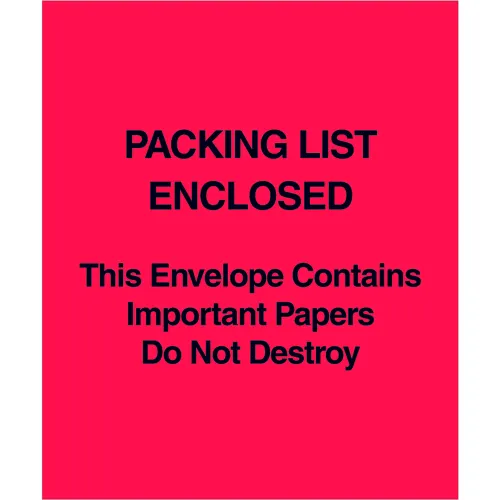 Full Face Envelopes, "Packing List Enclosed" Print, 6"L x 5"W, Red, 1000/Pack