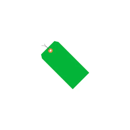 Shipping Tags, Pre Wired, #8, 6-1/4"L x 3-1/8"W, Fluorescent Green, 1000/Pack