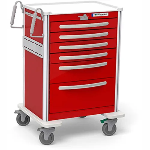 Waterloo Healthcare 6-Drawer Aluminum Tall Emergency Cart, Lever Lock, Red