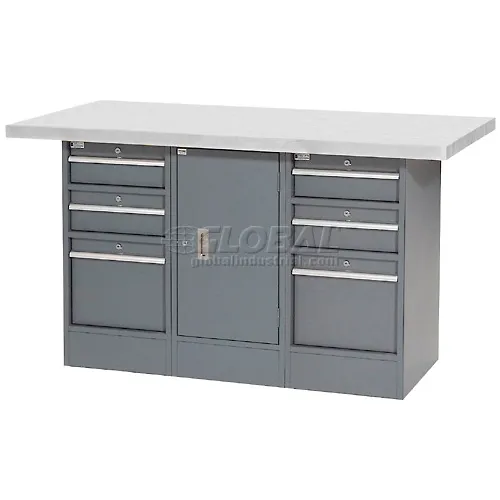 Global Industrial Workbench w/ Laminate Top, 6 Drawers & 1 Cabinet, 60"W x 30"D, Gray