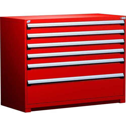 Rousseau Metal Heavy Duty Modular Drawer Cabinet 6 Drawer Counter High 60"W - Red