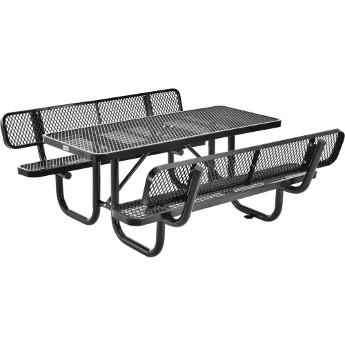 Global Industrial 6' Rectangular Picnic Table w/ Backrests, Expanded Metal, Black
