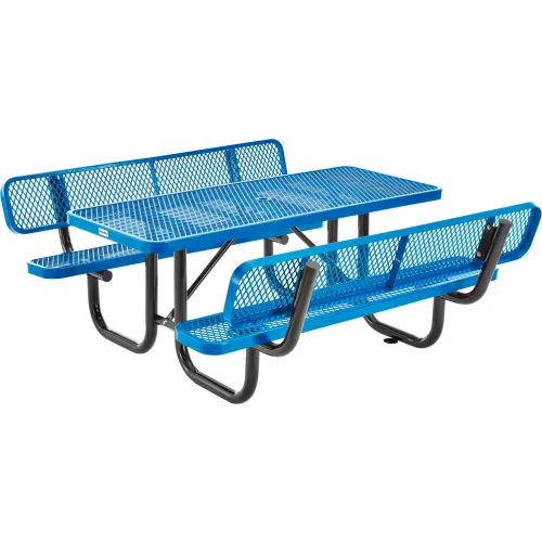 Global Industrial 6' Rectangular Picnic Table w/ Backrests, Expanded Metal, Blue