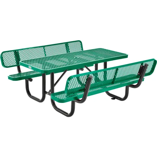 Global Industrial 6' Rectangular Picnic Table w/ Backrests, Expanded Metal, Green