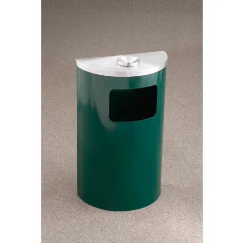Glaro 6 Gal Half Round Ash/Urn Side Opening Waste Receptacle, Satin Black/Satin Aluminum -1894-BK-SA