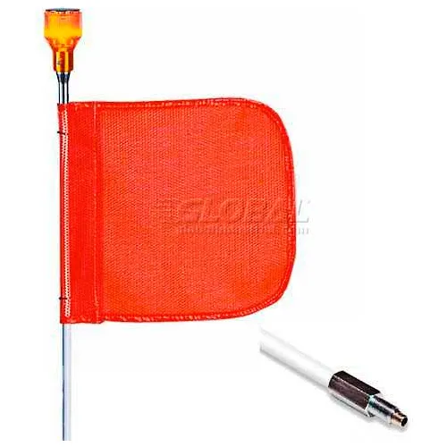 6' Heavy Duty Standard Threaded Hex Base Warning Whip w/ Lighting Capability, 12"x11" Orange Flag