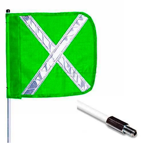 6' Heavy Duty Standard Threaded Hex Base Warning Whip w/o Light, 12"x11" Green w/ X Rectangle Flag