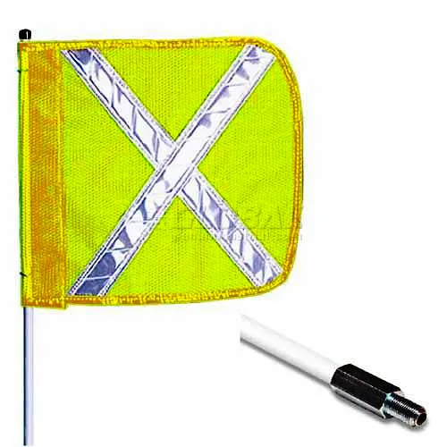 6' Heavy Duty Standard Threaded Hex Base Warning Whip w/o Light, 12"x11" Yellow w/ X Rectangle Flag