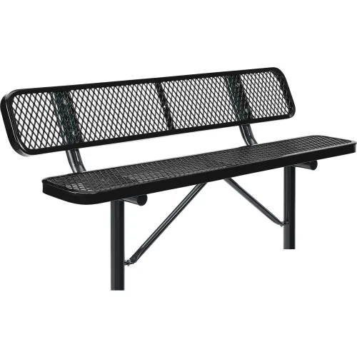 Global Industrial 6' Outdoor Steel Bench w/ Backrest, Expanded Metal, In Ground Mount, Black
