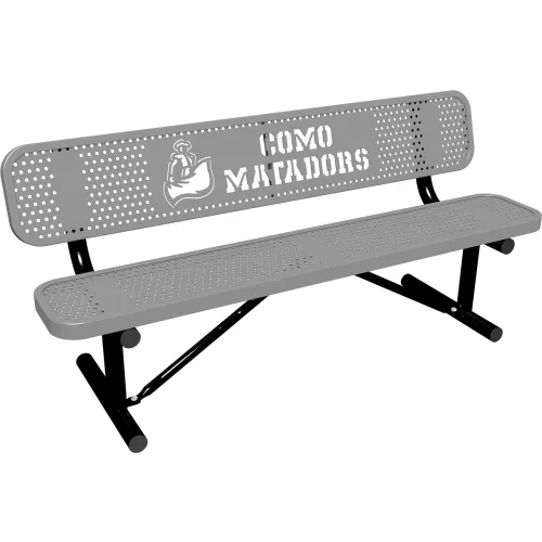 Leisure Craft 6' Personalized Standard Bench with Back, Perforated Metal, Portable, Gray