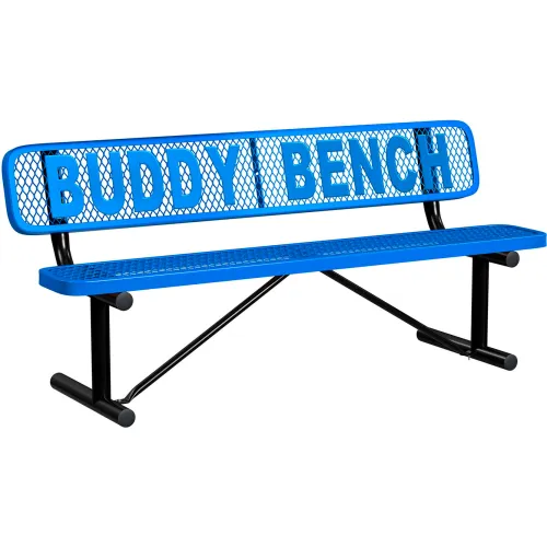 Leisure Craft 6' Personalized Standard Buddy Bench with Back, Expanded Metal, Portable, Blue