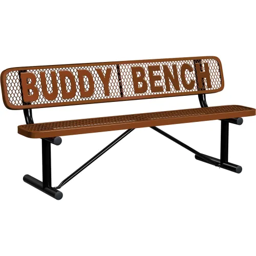 Leisure Craft 6' Personalized Standard Buddy Bench with Back, Expanded Metal, Portable, Brown