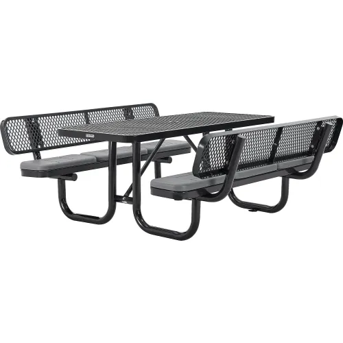 Global Industrial 6' Rectangular Picnic Table w/ Backrests & Cushions, Expanded Metal, Black