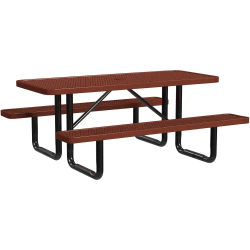 Leisure Craft 6' Rectangular Standard Picnic Table, Expanded Metal, Portable, Brown