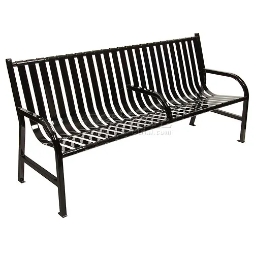 6' Slatted Metal Bench w/ 3 Armrests, Black