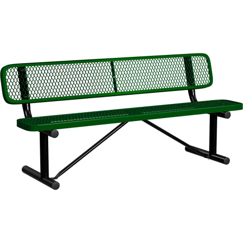 Leisure Craft 6' Standard Bench with Back, Expanded Metal, Portable, Black Green