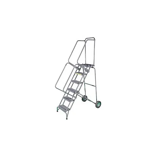 6 Step 16"W Stainless Steel Fold and Store Rolling Ladder - Perforated Tread w/ Cal OSHA Handrail