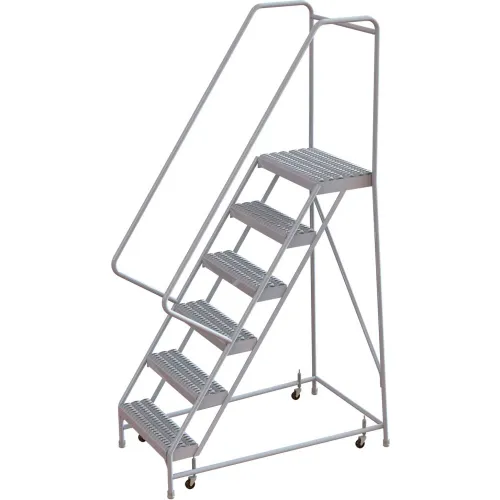 6 Step Aluminum Rolling Ladder, 16"W Grip Step, 30" Handrails - WLAR106165