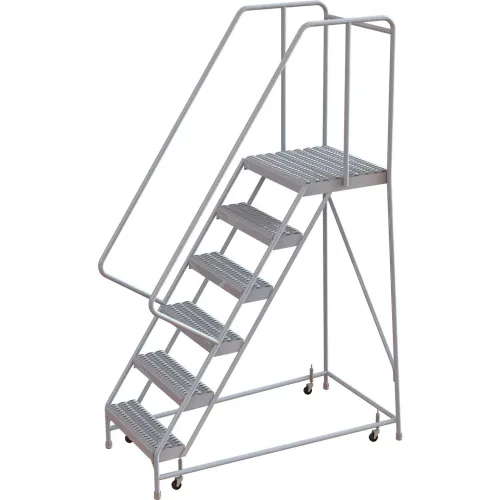 6 Step Aluminum Rolling Ladder, 16"W Grip Tread, 21"D Top Step, 32" Handrails - WLAR106165-D4