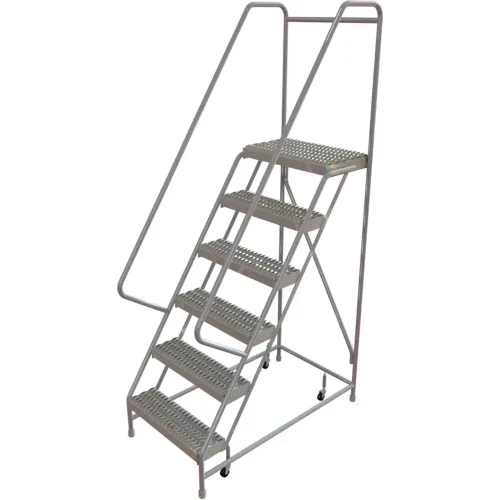 6 Step Aluminum Rolling Ladder, 24"W Grip Tread, 14"D Top Step - WLAR106245C