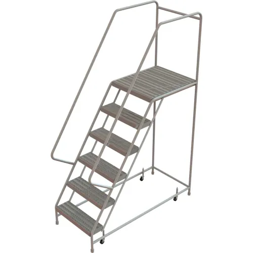 6 Step Aluminum Rolling Ladder, 24"W Grip Tread, 21"D Top Step - WLAR106245-D4C