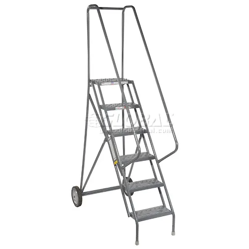 6 Step All-Terrain Rolling Steel Ladder - Perforated Tread - 450 Lbs. Capacity