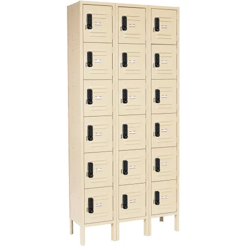 Global Industrial 6-Tier 18 Door Digital Locker, 36"W x 12"D x 78"H, Tan, Assembled