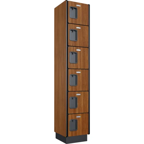 Global Industrial 6-Tier 6 Door Wood Locker, 12"Wx15"Dx76"H, Cherry, Unassembled