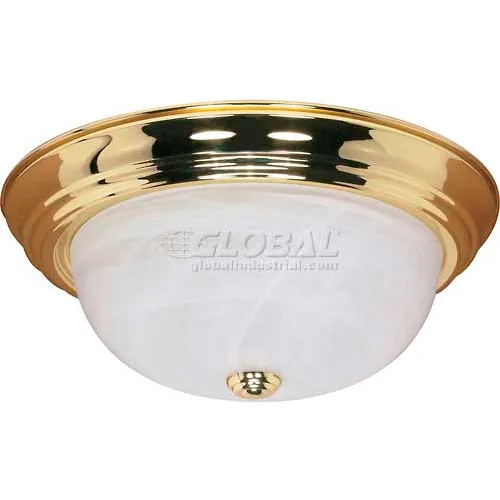 Nuvo 60/215, 3 Light-Ceiling-Flush Mount, Alabaster Glass, Polished Brass, 15.25"W X 6"H