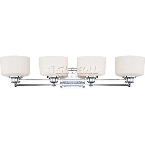 Nuvo 60/4584 Soho-4 Light Vanity Fixt., Satin White Glass, Polished Chrome, 34"W X 7.25"H