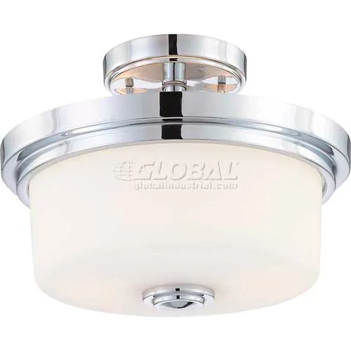 Nuvo 60/4593 Soho-2 Light Semi Flush Fixt., Satin White Glass, Polished Chrome, 13"W X 10.125"H