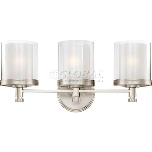 Nuvo 60/4643 Decker-3 Light Vanity Fixt., Clear/ Frosted Inner, Brushed Nickel, 21.75"W X 10.25"H