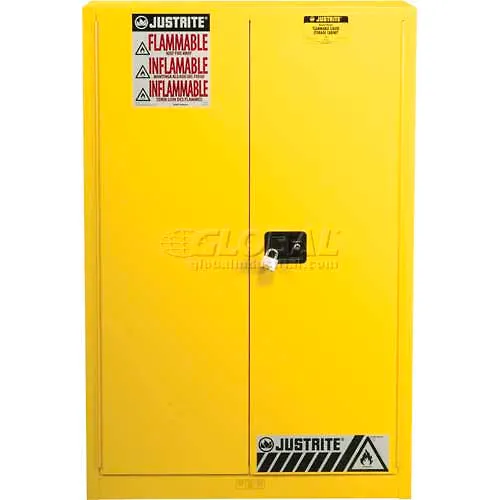Justrite 60 Gallon 1 Sliding Door, Self-Close, Paint & Ink Cabinet, 43"W x 18"D x 65"H, Yellow