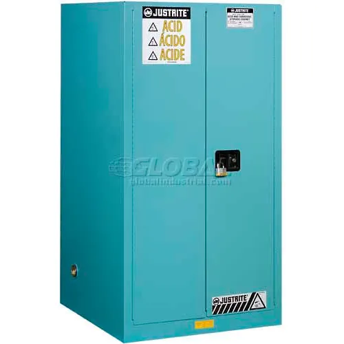 Justrite 60 Gal. Acid Cabinet, Manual Close, 2 Door 34"W x 34"D x 65"H, Blue