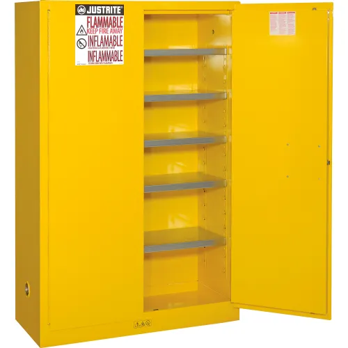 Justrite 60 Gallon 2 Door, Manual, Paint & Ink Cabinet, 43"W x 18"D x 65"H, Yellow