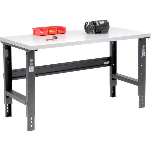 Global Industrial Adjustable Height Workbench, 60 x 30", Laminate Square Edge, Black