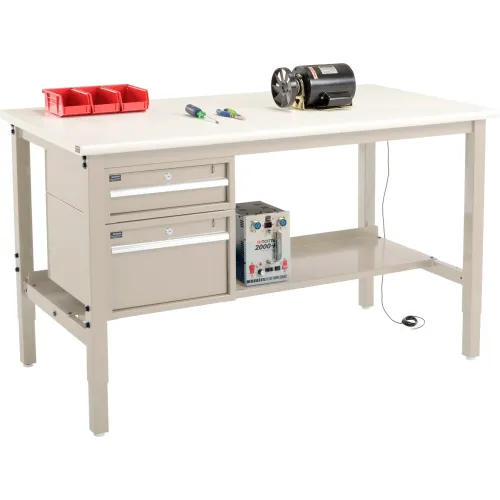 Global Industrial 60"W x 30"D Production Workbench - ESD Safety Edge - Drawers & Shelf - Tan