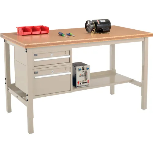 Global Industrial 60 x 30 Production Workbench - Shop Top Safety Edge - Drawers & Shelf - Tan