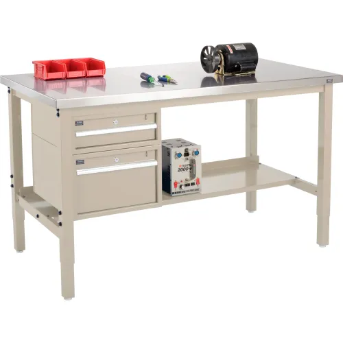 Global Industrial 60x30 Production Workbench, Stainless Steel Square Edge, Drawers & Shelf Tan