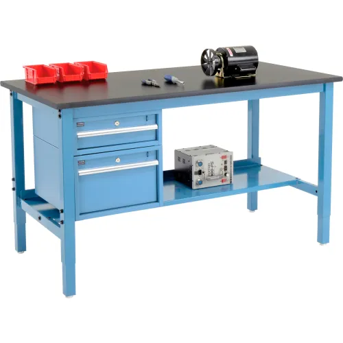 Global Industrial 60 x 36 Production Workbench - Phenolic Safety Edge - Drawers & Shelf Blue