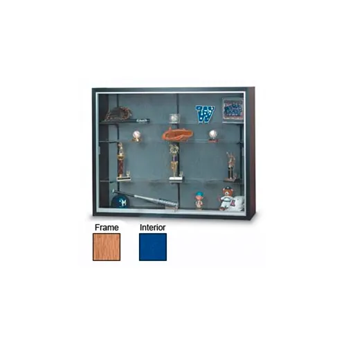 60" x 48" x 12" Oak Laminate Display Case w/3 Shelves and Cobalt Accent Interior