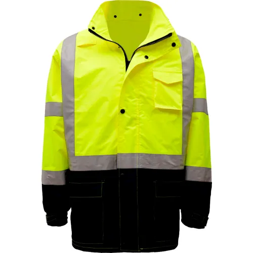 GSS Safety 6003 Class 3 Premium Hooded Rain Coat, Lime with Black Bottom, 4XL/5XL